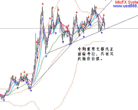 我们最近所预测的美元和日元的调整走势仍然延续中。作多非美非日货币显然是最好的交易策略。这之中,商品货币走势极其类似。澳元上周冲到0.7227,离上波反弹高点0.7266只有半步之遥;纽元上周最高到0.5898,离上波反弹高点0.6080也不足百点;加元走势虽然稍弱,但也接近了其重要中期支撑水位。近期商品价格的走强和股市的回暖为这些货币走强提供了基本面支撑。这三个币种能否一举攻克重要阻力位,摆脱调整,上演一波牛市行情,非常值得关注。就交易策略来讲,这些阻力位的突破显然具有跟进短线作多的价值。下图是美元对加元的走势情况。