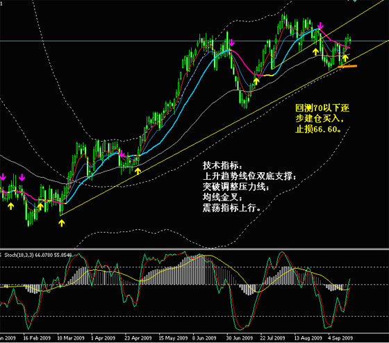 在前两期策略推荐中,我们还特别推荐了原油的买入机会。经过连续两周对趋势支撑的测试。这波日趋级别的调整已经完成,下周趁回调应积极进场做多。以下是11月期的布伦特原油走势图。