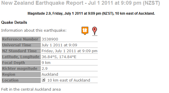 新西兰中国城网站 网讯 7月1日晚9点9分发生2.9级地震,震中靠近MISSION BAY,CITY与北岸数地区有震感。
