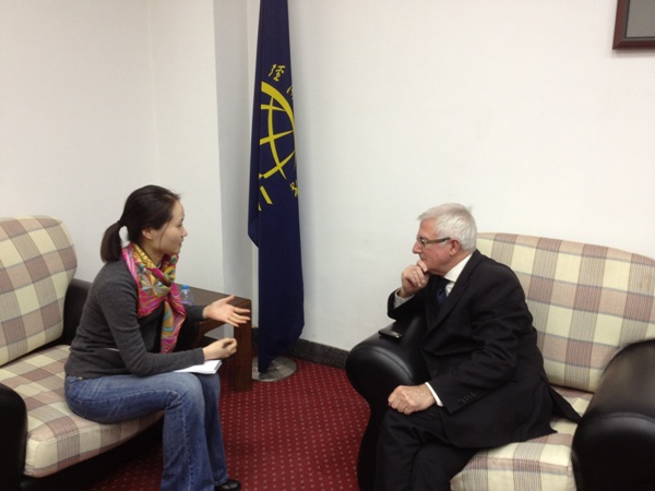 19日上午8点一刻开始,Groser部长先后接受了新华社和财新传媒的采访。之后Groser部长和杨议员在大使等的陪同下前往商务部,与商务部长陈德明会晤。这是访问团在北京的重头戏。