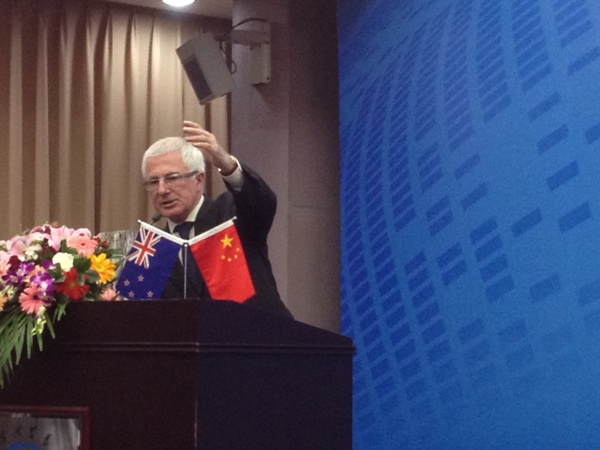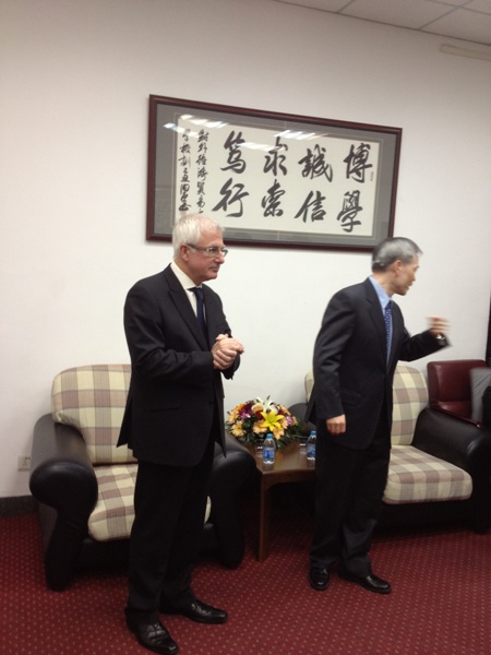 下午 3点半,Groser部长和杨议员在大使等的陪同下与对外经贸大学的领导会谈。随后,部长对对外经贸大学的师生发表演说。Groser部长重点谈了他对自由贸易的看法、中新关系和中国对全球经济的重要性。演说结束后,Groser部长接受了英文中国日报(China Daily)的采访。采访中,部长强调新西兰政府欢迎中国投资。