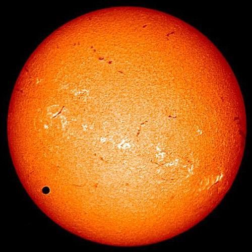 (图为2004年拍摄的金星凌日照片,可以清晰的看到黑色的金星本体和背景上明亮的太阳圆面,图片来源:网络)