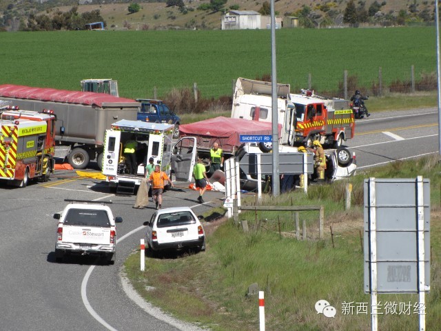 当地时间周四(6日)下午,4名香港游客乘坐的旅行车在新西兰南岛瓦纳卡第六号州际公路一个交汇处,与一辆有拖头的大货车相撞。旅行车当时正准备转右驶入路口,前往瓦纳卡方向,货车由瓦纳卡机场方向驶至第六号州际公路,而交汇处路口有提醒让路的路牌。旅行车于意外后整辆翻转,严重毁烂,大货车则损毁轻微,司机没有受伤,事后接受当地警方调查。报道指,事发路段时速上限100公里,意外后大货车的胎痕长约50米。