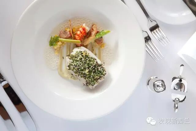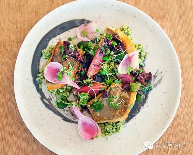 推荐菜品:Roasted market fish with peas, paua andpeppered pork
