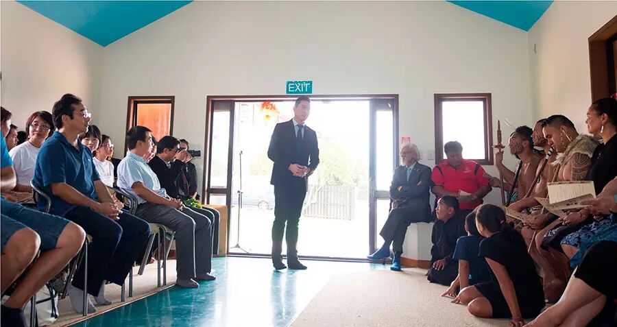 *新西兰国际妇女会特约品文化顾问-Howin Yin在代表华社向毛利部落做演讲现场