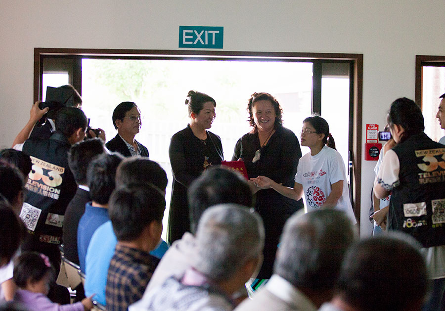 *中国领事馆副总领事宋陈懋女士代表新西兰国际妇女会和RUAPOTAKA MARAE交换礼物现场