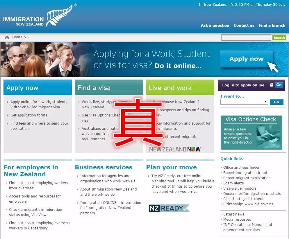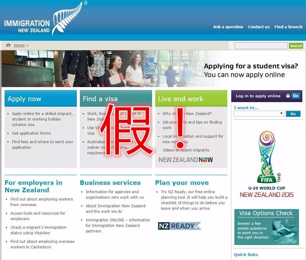 此诈骗网站使用与新西兰移民局官网极其相似的网站地址,并复制了今年上半年官网页面内容。