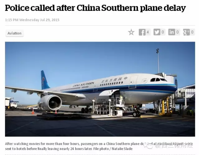 7月29日新西兰媒体报道了南方航空一架奥克兰飞广州的航班延误后,竟然叫了警察,这种事情在新西兰不多见。