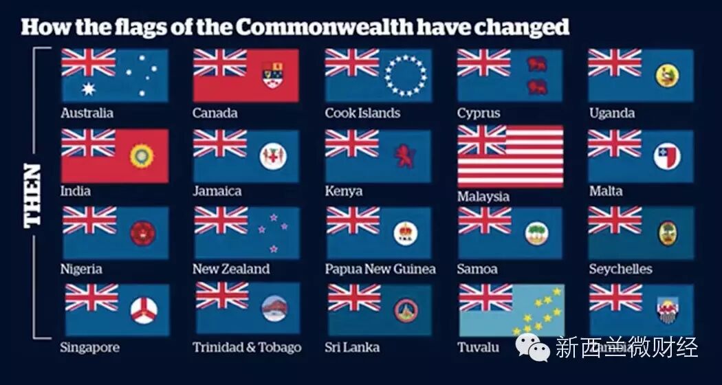 还有,20个英联邦国家里,只有澳大利亚、新西兰和库克群岛这3个国家现在没换国旗了,