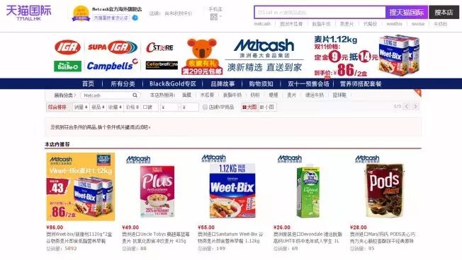 澳洲最大的食品开发商Metcash宣布进军淘宝,现在已经在天猫商城上建立了自己的官方旗舰店了!!