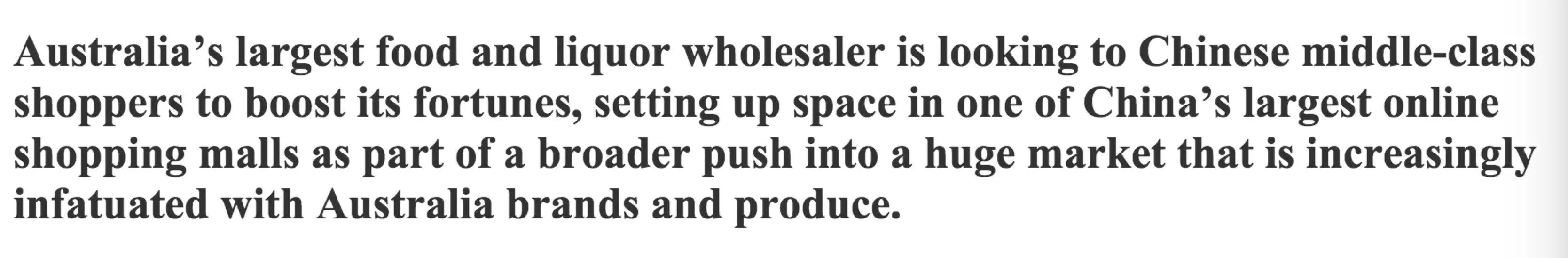 作为澳洲最大的食品和酒类批发商,Metcash已经和阿里巴巴签订了合作协议!