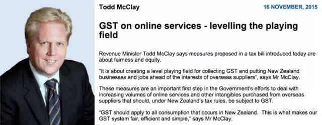 麦克雷说,征收消费税公平合理,可以为外国公司和本土公司提供一个公平的竞争环境。新西兰公司已经开始对消费者征收消费税,外国公司理应如此。目前南非、挪威和日本等国家已经通过立法推出了类似的政策,澳洲计划于2017年7月开始推行。