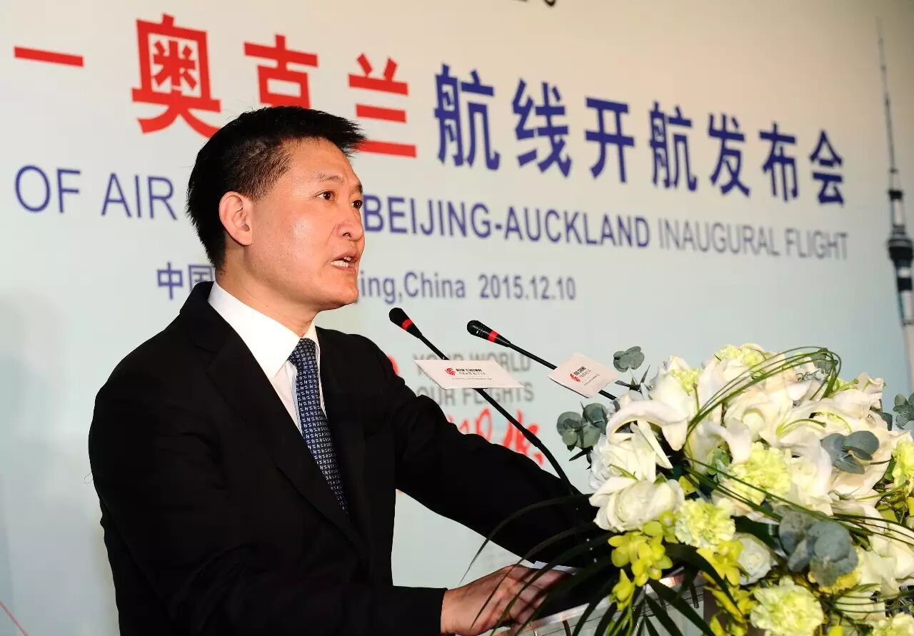 国航副总裁王明远首先致辞,他代表国航对各位嘉宾的到来表示热烈的欢迎和衷心的感谢!并表示很高兴和大家相聚在这里,共同见证国航开通北京-奥克兰直飞航线。近年来中新两国之间交往迅速发展,北京-奥克兰航线开通后,会更加有力地促进中新之间的经贸文化交流,为两国关系的发展注入新的活力。未来国航还将继续加深与新西兰航空公司的联营合作,拉近中国与大洋洲的距离,为往来的旅客提供更多便利。