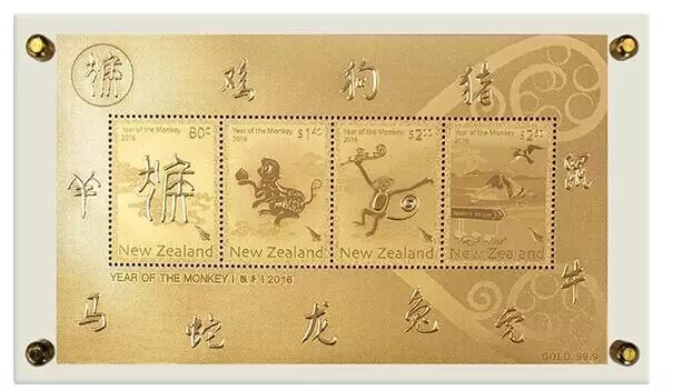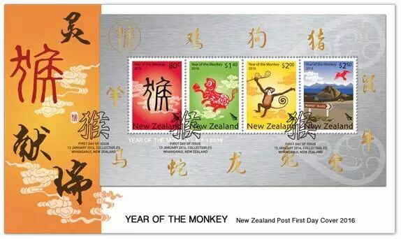 除此之外,新西兰邮政还为集邮爱好者提供了2016猴年邮票的首日封和小型张首日封,售价均为$7.2。
