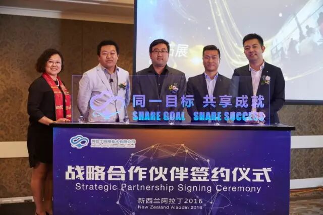 短短一年,就飞速成长成为新西兰本地最大的跨境电商交易平台,阿拉丁的成就离不开云商的参与与支持。新西兰阿拉丁网络技术有限公司还在会上,分别向业绩突出的云商授予了嘉奖,分别为“最佳销售奖”、“最佳贡献奖”、“突飞猛进奖”、“中国市场开拓奖”以及“最佳销售布局奖”。在最后的签约仪式上,阿拉丁网络技术有限公司代表与纽澳康源有限公司、新西兰新顺风国际速递签署了2016年度战略合作伙伴协议并一同触发启动装置,随着“同一目标 共享成就”的水晶板缓缓升起, 2016年阿拉丁与众合作伙伴和云商一道扬帆起航!