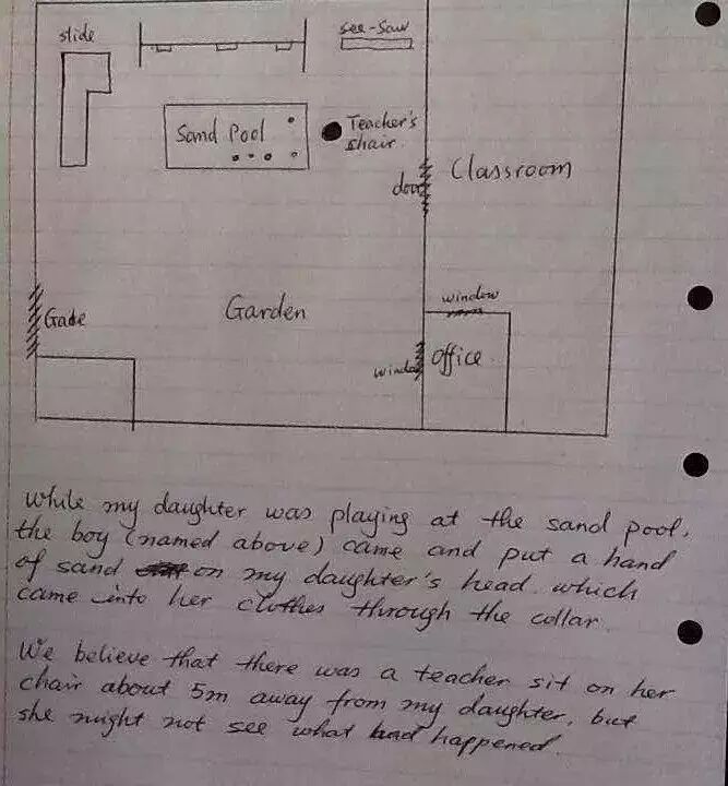 Marry(化名)是一名新西兰全职妈妈,有一个可爱的女儿小欣,像往常一样Marry去幼儿园接女儿,却发现小欣一脸不开心,一问才知道课间玩耍时“一名小男孩把沙子故意扔进了小欣的领子里”。当时一名老师就坐在5米以外,却并没有来过问。
