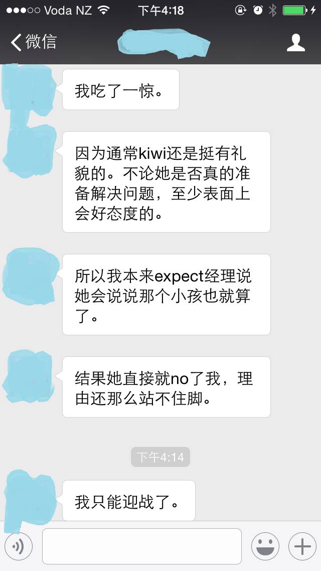 于是Marry找到了这所位于奥克兰西区幼儿园的经理,希望她可以告诉小男孩儿这样做是不对的。但这名经理给出的回答是:“NO" 理由是:“这名小男孩的哥哥快30岁了,所以他在家里被惯坏了,如果你们不喜欢这间幼儿园和这里的教育方式,可以转去别的幼儿园”。面对这样的回应,Marry也是吃了一惊。。。