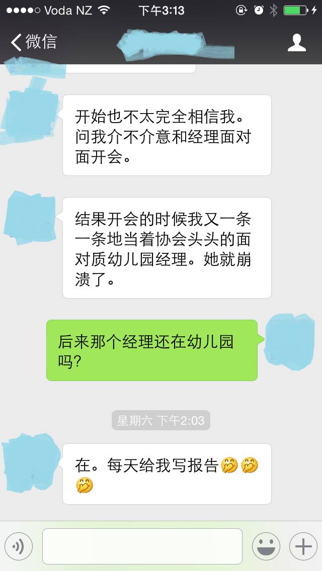 Marry写了一封5页长的信给奥克兰幼儿园协会,里面详细介绍了事情的经过,并表达了自己的看法。没过多久协会负责人打电话给Marry询问了更多细节,同时提出疑问,希望她能和幼儿园经理面对面开会。