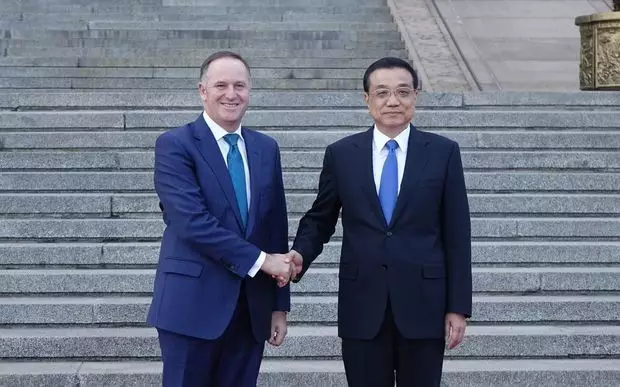 新西兰中国城网 网讯 国务院总理李克强18日下午在人民大会堂同来华进行正式访问的新西兰总理约翰·基举行会谈。