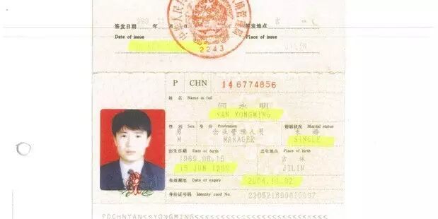 Passport presented during the trial of Yong Ming Yang, also known as Bill Liu, and now William Yan.