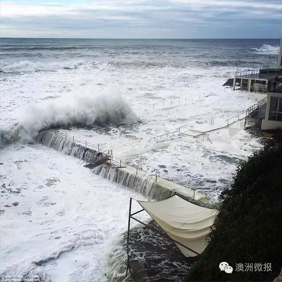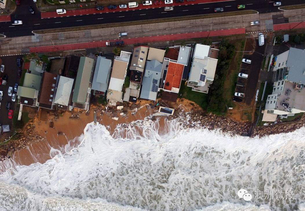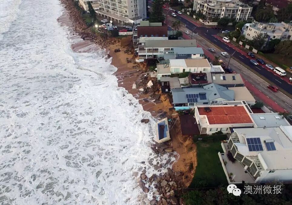 上千万澳元的海景豪宅摇摇欲坠,豪宅中陷入式游泳池被大风海浪席卷到了海滩上,用以欣赏明媚风景的二层阳台被大风吹塌,人们花费全部心血建造的美好家园,在自然灾难中显得那么不堪一击。