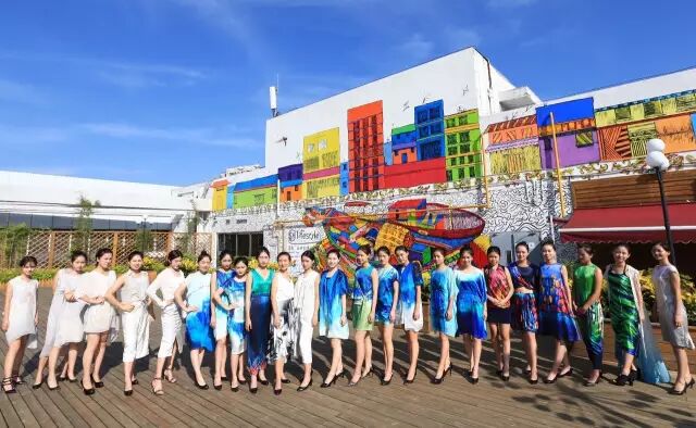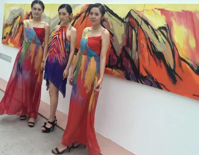 模特们穿着的衣服都以晨晓的画为背景素材,取画家故乡杭州的丝绸为材料,精心定制。年轻貌美的模特穿上晨晓的画,成为一尊尊“流动的色彩雕塑”,将艺术家斑斓绚丽的内心世界呈现给观众。