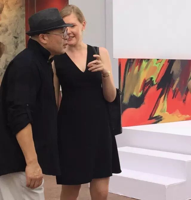 新西兰驻广州总领馆副总领事何爱梅(Emma Hodder)女士也亲临展会现场,为这位国宝级艺术家祝贺!