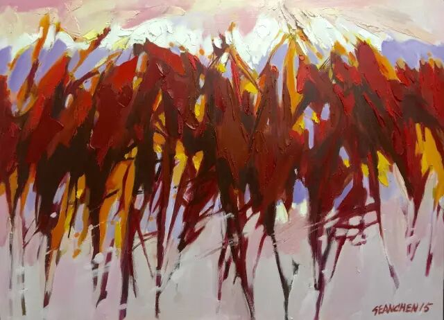 晨晓,出身浙江杭州名门世家,深居新西兰30年,游历了全世界40多个国家,并在多所世界著名艺术院校举办讲座。他的作品与高更一样,充满了那种来自南太平洋的热烈色彩。