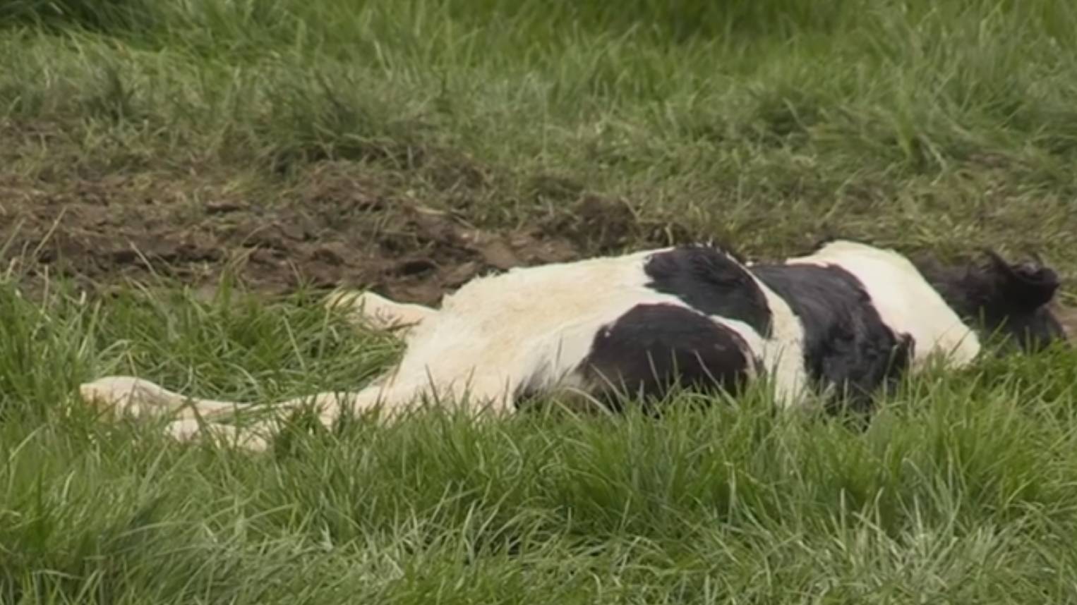 而它孩子的尸体就躺在奶牛妈妈的旁边几米的地方。▼