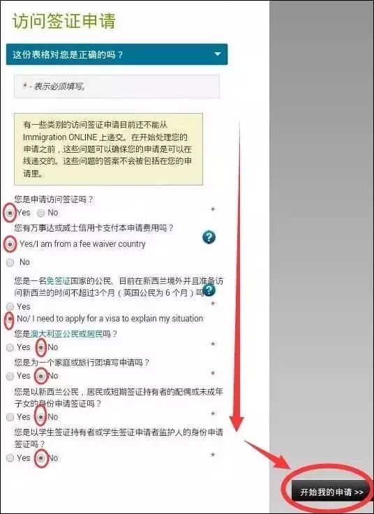 如实回答上述问题,然后点击“开始我的申请”。之后,根据自身情况,把下面所有表格和资料填写并上传。