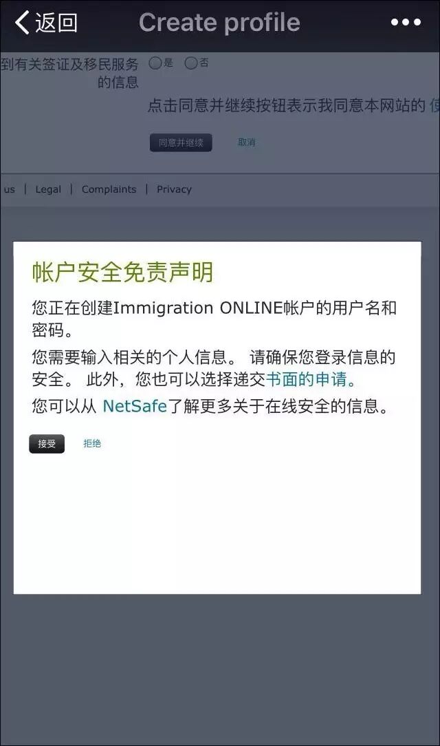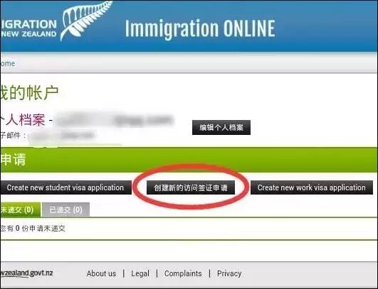 点击“创建新的访问签证申请”按钮,开始正式的申请。