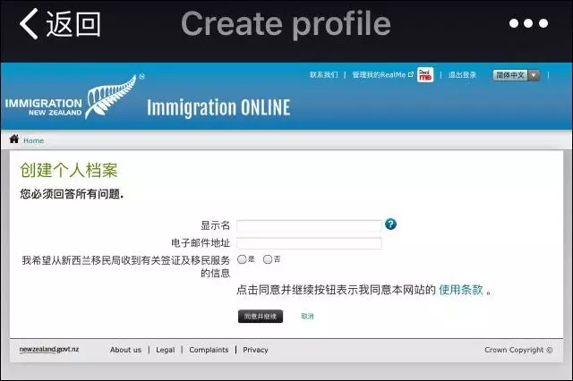 “显示名”指的是新西兰移民局和您通信时将使用这个名字,最长不能超过20个字符。
