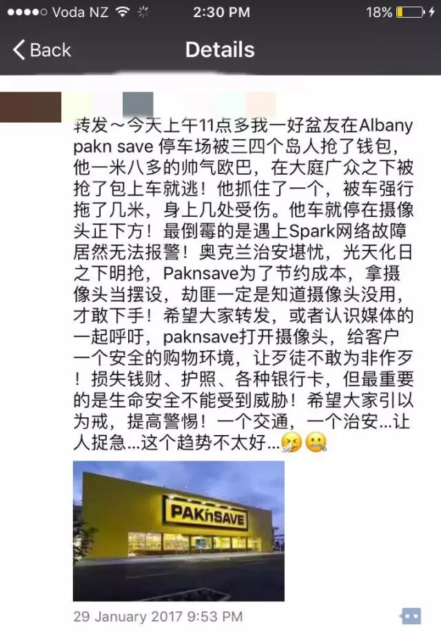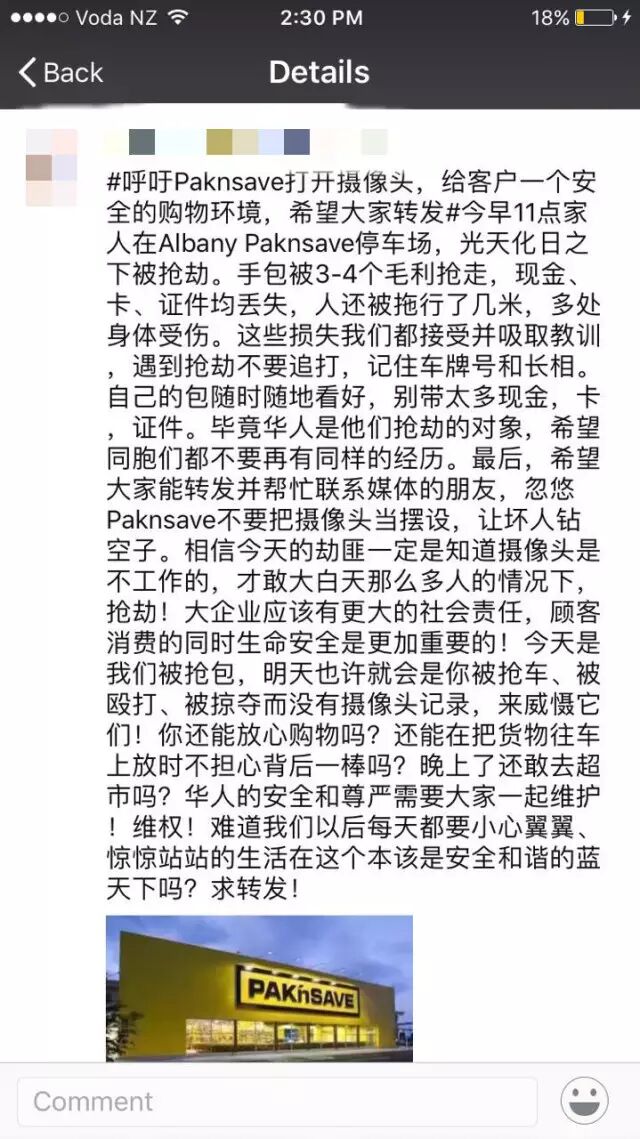 奥克兰的华人圈很多网友都对超市停车场被抢事件发表了自己的看法