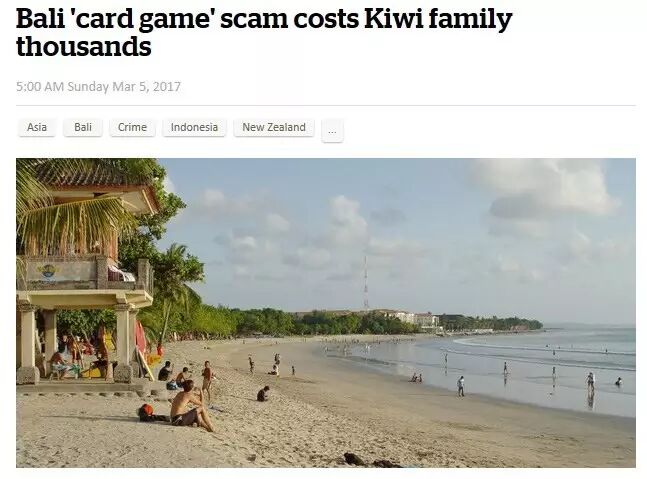 新西兰中国城网 每日新西兰报道 有阳光沙滩与清澈海水的印度尼西亚的巴里岛,是许多欧美人度假胜地,但新西兰一个家庭遭设局强迫赌博,输光2千纽币。