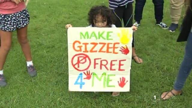 孩子们举着大标语上面写着