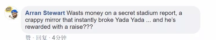 浪费钱在体育场的秘密报告上,还花了26万在市中心安装了一面大镜子,一个星期就破掉了...这种表现他竟然涨工资了?