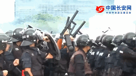 首先进行的是警方对抗滋事暴乱事件处置。直播解说中提到,深圳市公安局形成了成熟的防暴处置战术,针对不同规模、不同性质的群体性事件组成了各类防暴队,可以灵活机动应对。