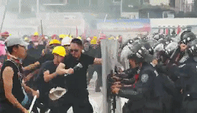 记者提问说,第一个问题,香港政府现在有没有请求北京提供驻港部队的协助?第二个问题,人大常委会现在有没有考虑根据《基本法》宣布进入紧急状态,有没有考虑到派遣解放军或者内地警察去协助香港政府?第三个问题,上个礼拜,驻港部队司令员陈道祥说到,极端暴力事件绝对不能容忍,上个礼拜出现了驻港部队的宣传片,最近深圳警方也有防暴警察的演练,我想知道,中央是想通过这些举动有什么信号想释放出来?