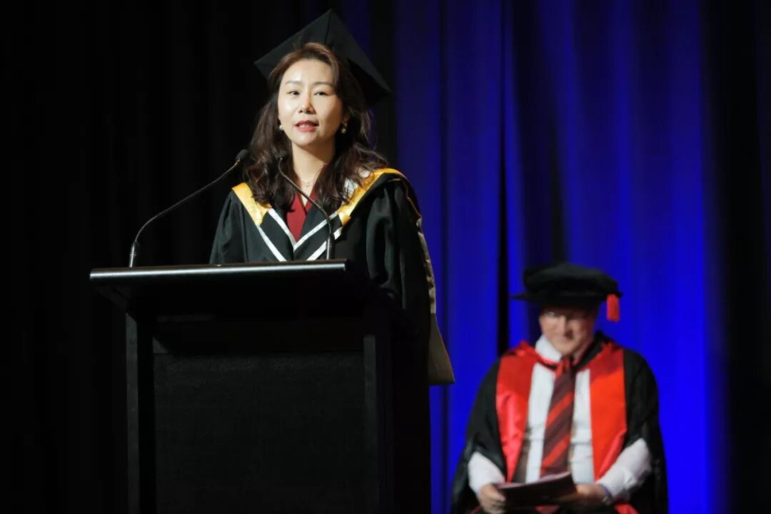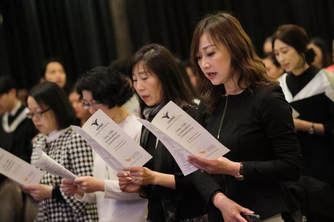 学院校长兼执行总裁陈金明博士致辞,首先他对所有远道而来的嘉宾表示深深的谢意,并祝贺所有毕业生顺利圆满的完成了自己的学习生涯,踏入了人生的新阶段。他表示学校的初衷在于培养具备开阔思维的人才,他希望同学们在今后的人生中不要停止学习,要勇于拼搏,勇于追梦,努力为自己和社会创造更多的价值。他提到,学校的今天离不开全体员工辛勤的努力,更离不开大家的支持。 最后陈博士引用印度大文豪泰戈尔的名言作为结束语:“无论你行走多远,我们始终与你同在;无论夜光下树荫有多长,始终与根相连”。道阻且长,莫畏惧,勿彷徨,UUNZ永远都是你强大的后盾,让你在前进的道路中不再迷茫! Dr David Lawson以及陈金明博士为同学颁发毕业证书。学生代表Dhiren Singh发表毕业宣誓。 优秀毕业生贾梦蝶致词。 优秀毕业生Tanya Chung带领大家一起进行祷告。 同学们欢聚一堂。