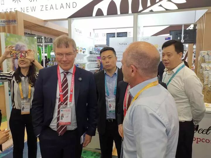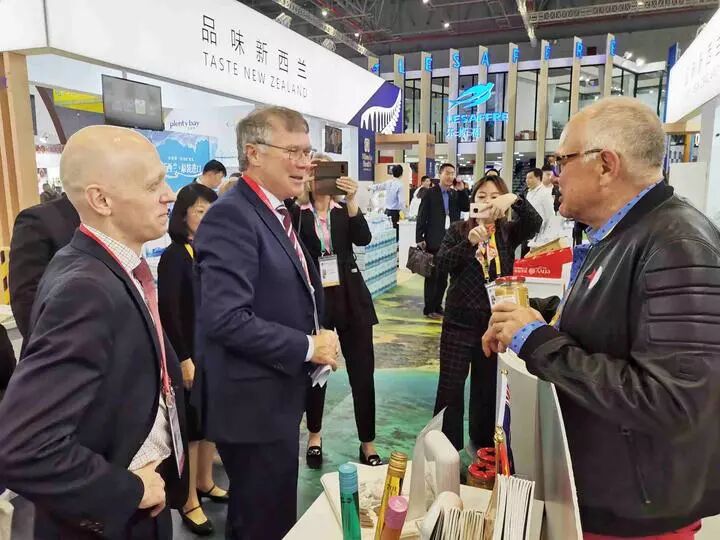 参加剪彩仪式的有新西兰驻中国大使馆商务参赞Andrew White, 新西兰贸易发展局驻上海商务参赞Richard Dunsheath,山西省贸促会会长焦惠生,大连市贸促会会长崔铁,新西兰中国商会会长王磊,新西兰纽食蓝集团董事王思维,Alibaba 新西兰公司总经理Pier Smulders, 新西兰皮卡斯食品集团创史人/董事长Pic Picot,新西兰Sweet As 集团董事长Neal Lenard 等中新嘉宾。 剪彩仪式后,和志耘会长代表新西兰中国国际贸易促进委员会与山西省贸促会焦惠生会长签署设立山西省贸促会驻新西兰代表处备忘录并荣幸接受了焦会长颁发的聘书。与中国上市公司论坛马钧主席签署了两机构分别在上海和新西兰互设办事处的备忘录。分别见证了山西省食品企业代表,上海零一壹科技有限公司代表与新西兰纽食蓝集团董事王思维签署的总金额4000万圆人民币的采购合同。 剪彩仪式前,新西兰贸易部长Hon. David Parker 在新西兰驻上海总领事Andrew Robinson 和中国驻新西兰大使馆商务参赞黄岳峰的陪同下巡视了新西兰展馆。 展会期间,和志耘会长还偶遇了大连市贸促会董振明副会长,四川省贸促会雷学杰副会长,邹继欧秘书长,原中国驻新西兰大使馆商务参赞王贺军司长等。老朋友相见格外亲切。 当天下午,应天津市贸促会的邀请出席了天津市经济发展论坛。论坛的信息量大,收货获满满的。 新西兰中国国际贸易促进委员会驻浙江省(宁波)办事处主任袁孜琦,会员单位代表王瑞,孟阳分别出席相关活动。 今年的第二届中国国际进口博览会吸引了50多家新西兰参展机构,展出的食品,葡萄酒,奶制品,蜂蜜,水果,矿泉水,花生酱,爆米花,茶叶,牛羊肉,冰激凌等产品吸引了众多的美食爱好者光临品尝,展位上人头攒动,熙熙攘攘,摩肩接踵,热闹非凡展会到11月10日结束。