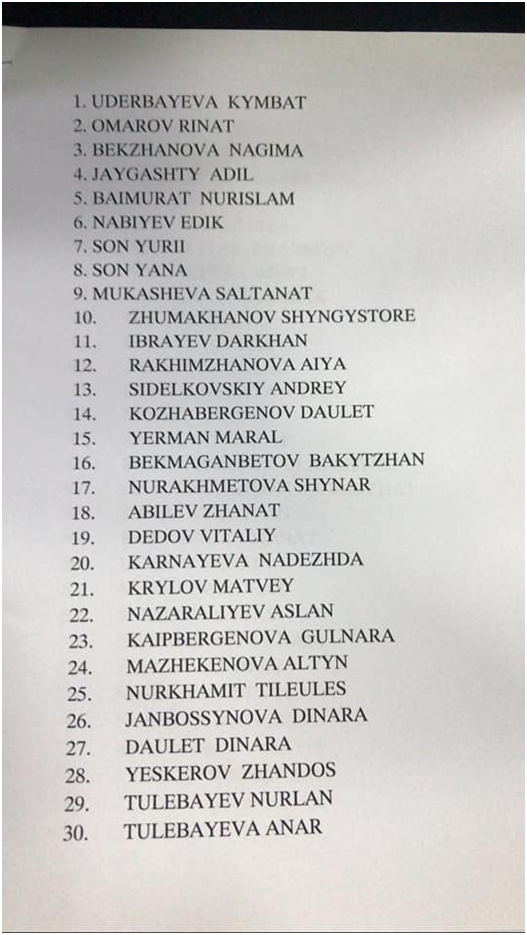 消息称:“8名儿童多处受伤,但未失去意识,已被送往(当地)儿童急救中心。5名多处受伤的成年人被送往急救医院。17名重伤者被送往阿拉木图市第四临床医院。14人当场死亡。”消息还称,还有5名伤情危重者被送往阿拉木图多科性临床医院。